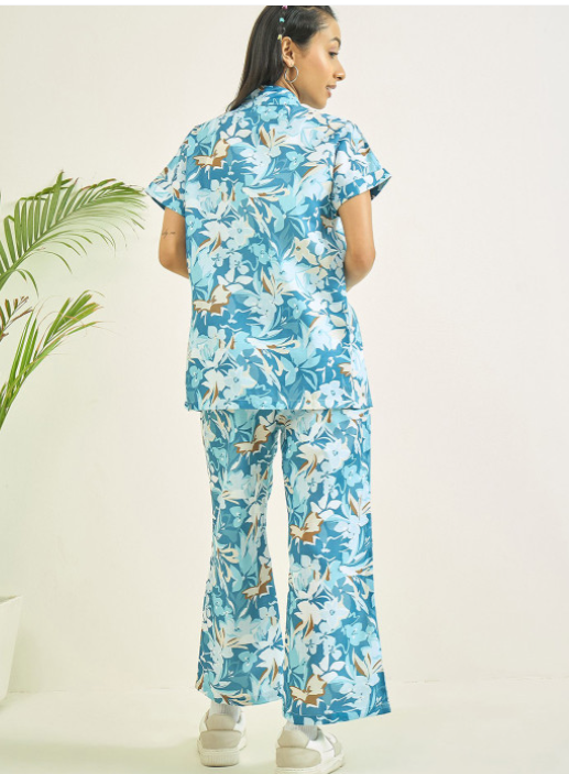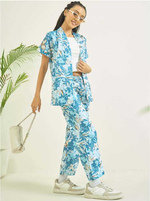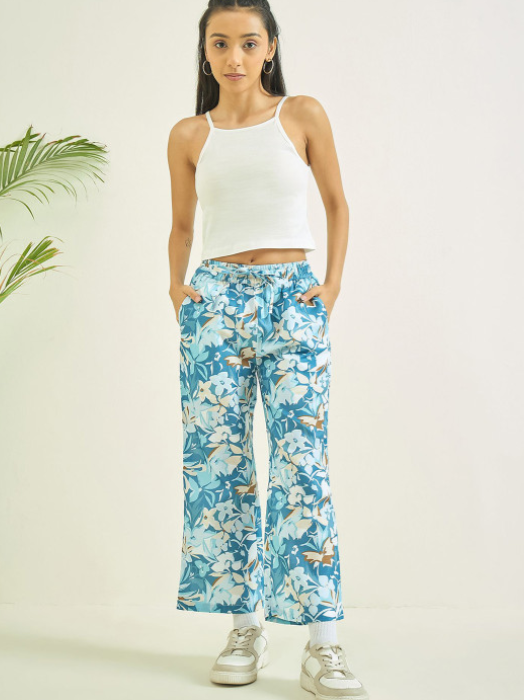 Blue, brown and white has a floral printed, shoulder strap,sleeveless