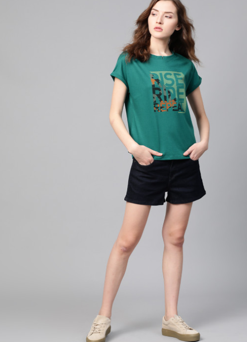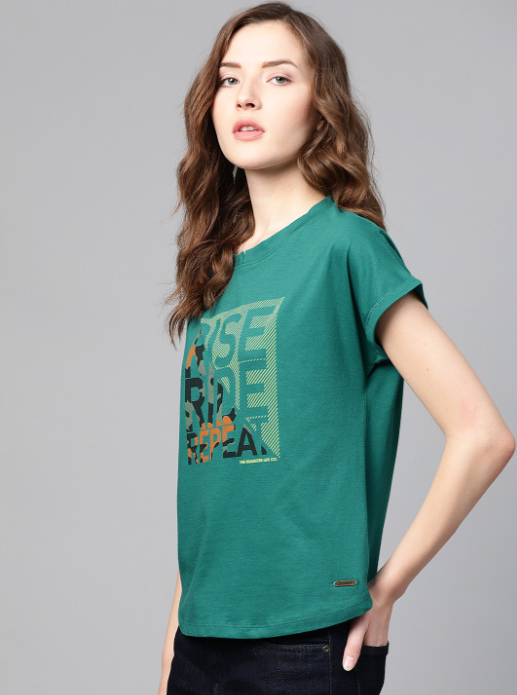 Green and Yellow printed T-shirt, has a round neck, and short sleeves